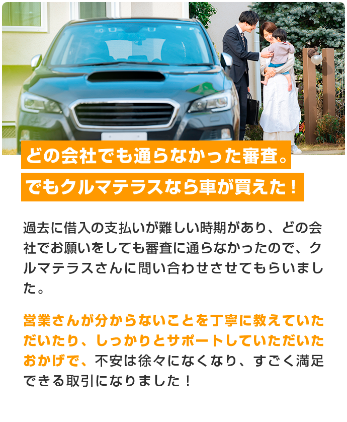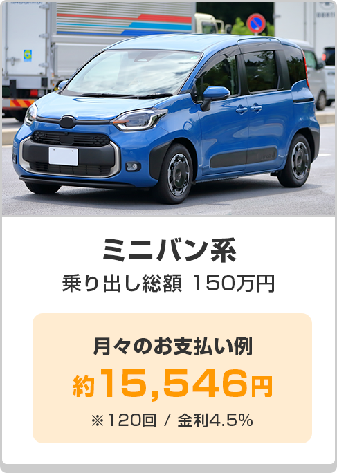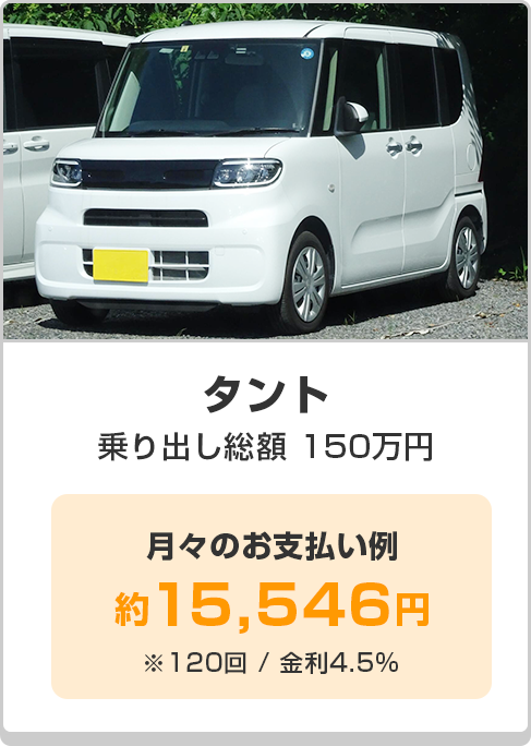各金融機関と提携し、出来る限り一般的なローンに近い金利でお車をご提供する事を実現いたしました。